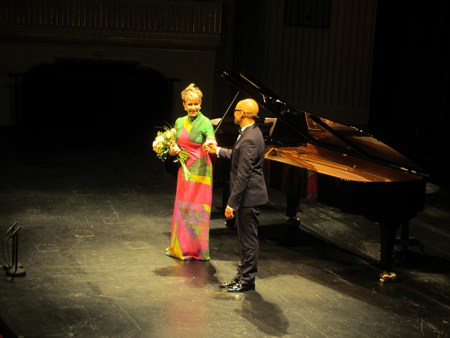 She is generous, as well. In response to the spectators’ persistent applause, she granted us 15 more minutes of great time with three more songs. She closed the evening by singing “Tanti Affetti”, aria from Rossini’s opera, La Donna del Lago in which she displayed all the flexibility, the colours and skill of her voice; then the song “Over the Rainbow” which was sung for the first time by Judy Garland in the movie “The Wizard of Oz” and finally, Richard Strauss’s lied “Morgen!” (Tomorrow) which has a sorrowful melody, but optimistic lyrics.