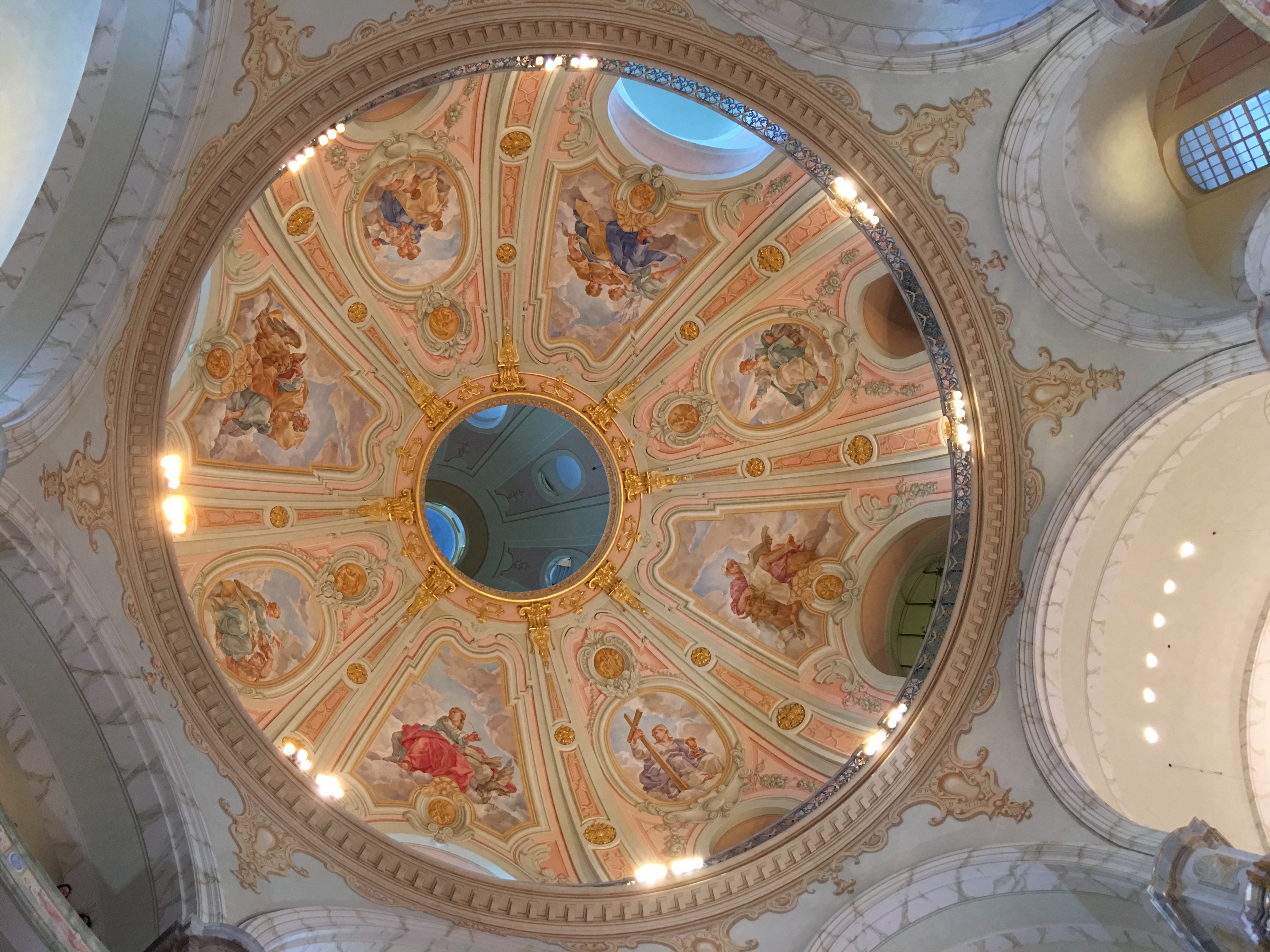 Because of the immense sunlight pouring through the glass and not stained windows, Frauenkirche looks like a fruit cake than a typical church.