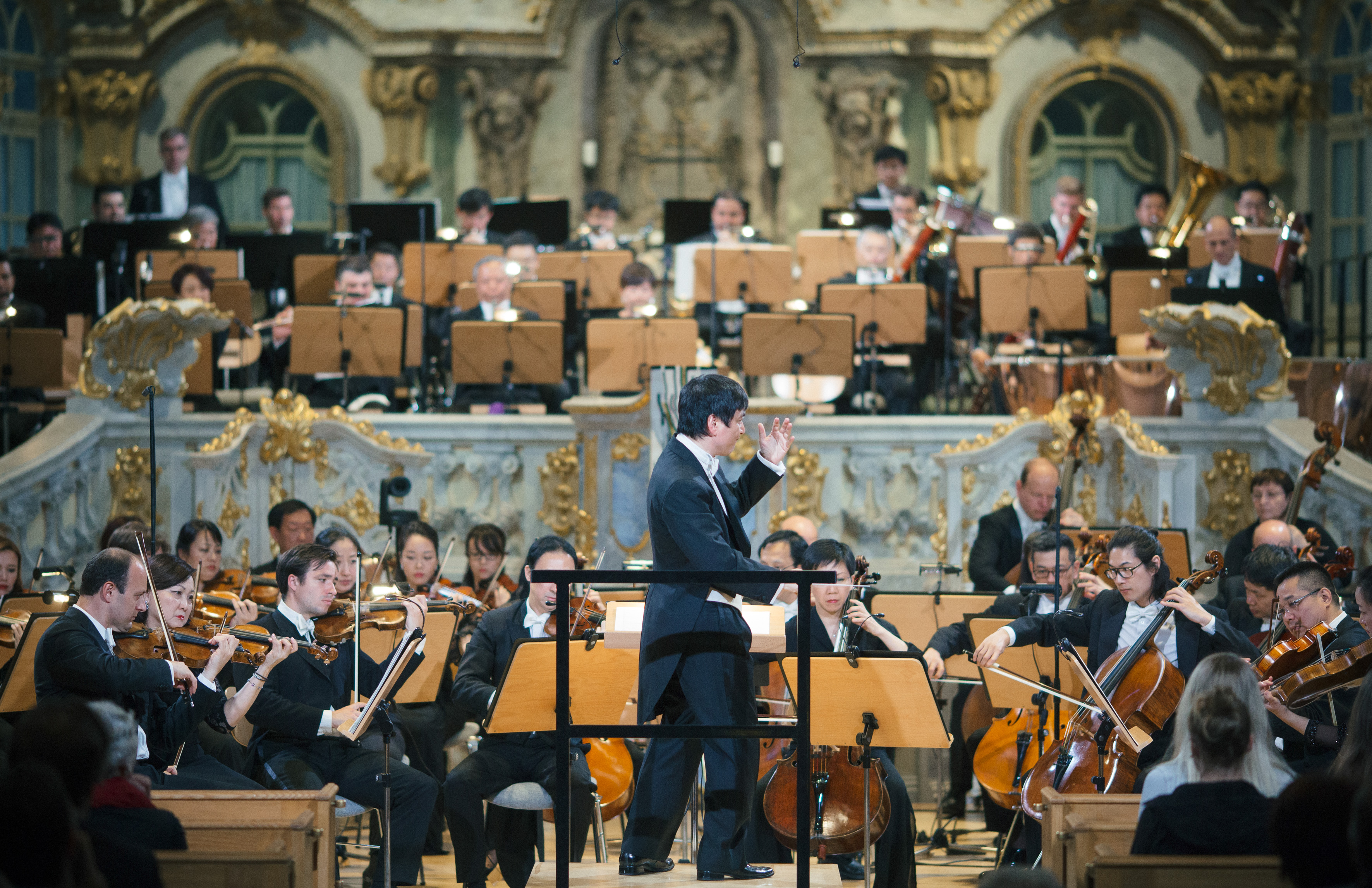 The body language that Shaham displayed during the performance was also worth seeing. These moves that some might find odd, was in my opinion a sign that showed how much he enjoyed making music in an exceptional place like Frauenkirche with the orchestra, and how big of a love he had for Mendelssohn’s concerto. His encore piece Bach will probably have more of an unforgettable place than Mendelssohn. His Bach interpretation, just like Mendelssohn, was indescribably beautiful with its pureness, and lightness. Singapore Symphony conducted by Lan Shui performed the Dresden premiere of Cheng Zhangyi’s Orchestra Piece at the beginning of the concert, and Schönberg’s masterpiece Transfigured Night that made a breakthrough in music history, and Ravel’s La Valse, after the concerto. In Schönberg’s work, we witnessed the vibrant tones and the mastership in synchronized playing of Singapore Symphony strings. Ravel’s work was also performed impressively with the extensive participation of the wind instruments, however it could be argued that La Valse pushed the acoustical limits of a place like Frauenkirche, which is not really suitable for the romantic symphonic music, pretty hard. Cheng Zhangyi’s ten minutes long contemporary work Orchestra Piece that opened the concert was a work that was composed for a large orchestra, string instruments played in higher positions all the time, spread mystical rings to every corner of Frauenkirche, and has a fabulous atmosphere.
