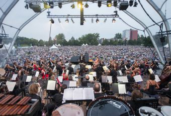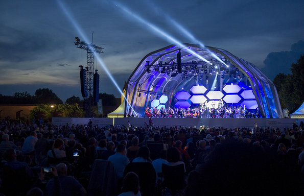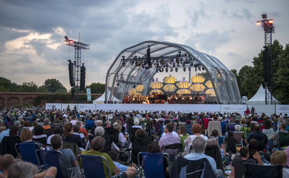 The biggest problem at the symphony orchestra concerts in an open air environment is to be able to find a solution for delivering the refined works with high artistic values that we are used to listening in closed concert hall environment to the ears of the audience in the best possible conditions, where microphones are used and there is no natural acoustics; and achieving this is not at all easy. At Klenzepark concert that I watched within Audi Summer Concerts Festival, I experienced with surprise that the sound of the orchestra was coming to our ears without any deterioration, and no kind of artificial listening environment occurred due to metallic nature of the sound. In this aspect, KlangVerwaltung Orchestra concert was a more satisfying experience sonic wise than Vienna Philharmonic Orchestra’s traditional summer concert that I attended 4 years ago in the garden of Schönbrunn Palace.