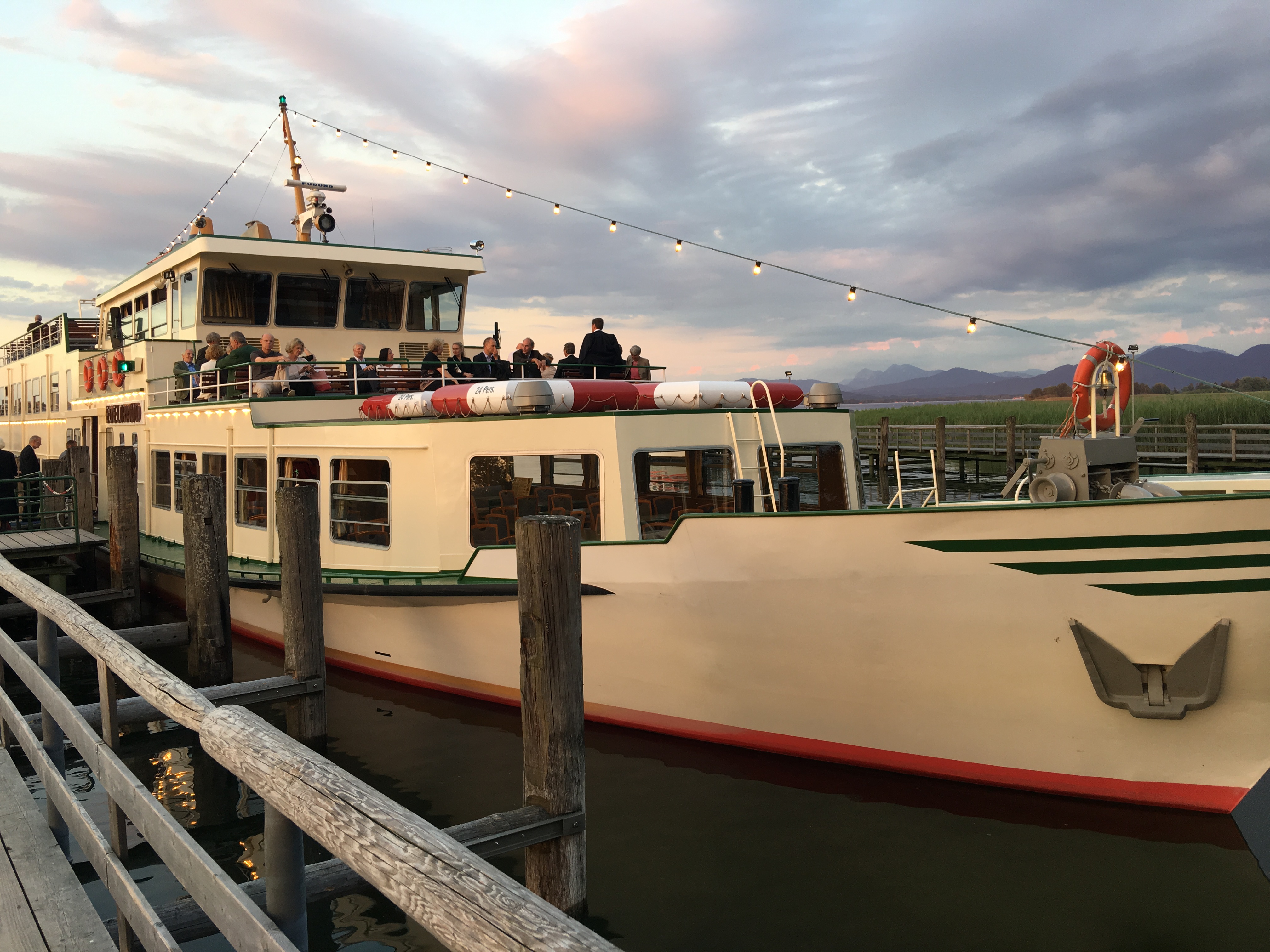 When the evening concert finishes in the palace, the ships that takes the guests from Herreninsel to Prien am Chiemsee are making a couple of trips until there is no guest left in the island. The return journey is pure joy with a view of sunset and the gentle breeze that sweeps over the calm waters. This unique atmosphere is more than enough to make the satisfied guests happier than ever.