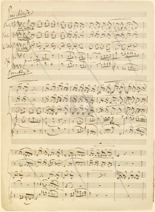 Robert Schumann’ın dört el piyano için Bilder aus Osten (Doğu’dan Tablolar) isimli eserinin el yazması notaları eksiksiz ve hasarsız biçimde koleksiyonumuzda mevcut. Notaların çoğu günümüze ya eksik ya da okunaklılığını yitirecek kadar yıpranmış şekilde kalmış oluyor. Bu açıdan değerli bir parça olduğunu düşünüyorum. Bir başka çok değerli parçamız ise Brahms’ın Op. 26 Piyanolu Dörtlü’sünün el yazmaları. Bu notalar enstitümüzden önce piyanist Rudolf Serkin’in himayesinde bulunuyordu. El yazmalarının en ilginç yanı elbette bestecileri çalışırken ve düşünürken anlık olarak gözlemleme imkanı sunuyor olmaları. Dikkatli ve profesyonel bir bakış açısıyla incelerseniz bu anlamda harika ipuçlarıyla karşılaşabilirsiniz. Fakat Op. 26 Piyanolu Dörtlü‘yü benim için bilhassa anlamlı kılan bir özelliği var. İkinci bölümün başı için iki ayrı versiyon mevcut. Brahms sonradan bunlardan ilkinin üzerini çizmiş. Bu iki versiyonu karşılaştırdığınız zaman, Brahms’ın tam olarak neyi neden ve nasıl değiştirdiğini, piyano ve yaylılar arasında nasıl daha homojen bir tını elde etmeye çalıştığını görüyorsunuz. Sonradan viyolonsel partisi ile piyanonun sol el partisini birbirine entegre etmesi, piyanodaki temayı daha bütünlüklü duyulacak şekilde yaylılara da pay etmesi... Tüm bunlar Brahms’ın düşünme biçimini ve çalışma yöntemlerini anlamamız açısından çok etkileyici detaylar. Ein Deutsches Requiem (Bir Alman Requiem‘i) ve çeşitli şarkıların el yazmaları da mevcut. Bestecinin o esnada zihninden geçenleri okuyabilmemiz açısından her biri birbirinden değerli parçalar.
