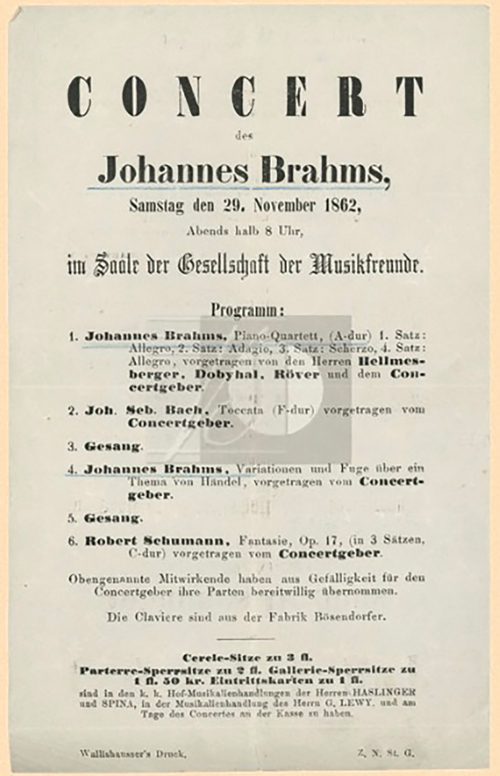 J. Brahms, Konser Programı, Viyana 29.11.1862 (© Brahms Institut)
