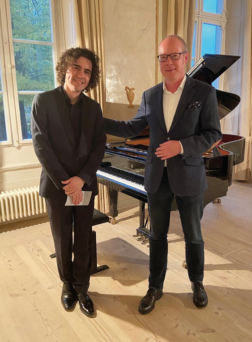 Mert Yeşilmenderes, Prof. Dr. Wolfgang Sandberger ile Villa Brahms'ta verdiği bir konser sonrası..
