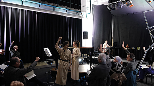 Eserin önceden de bahsettiğim gibi en önemli yanı, seyircileri bir karar alma mekanizmasının içine oturtmamız ve onlara aldıkları kararların gerçekten sayıldığı ve gidişatı etkileyebildiği bir meclisteymiş gibi hissettirmemizdi. Buna ulaşmak için piyanoyu sahneden indirip seyirciyle aynı seviyeye taşıyarak ve seyirciyi bir meclis gibi piyanoyu saracak şekilde oturttuk. Böylece herkes birbirini görebilecekti. Eserin üç kilit noktasında piyanodan kalkıp seyirciye konuşarak açıkladığım bir senaryo sunuyordum, seyirci de elini havaya yumruk olarak veya açık olarak kaldırıp iki mümkün gidişat için oy veriyordu. Her karar verme noktası için esere iki farklı versiyon yazıp çalışmıştık, o yüzden her konser birbirinden benzersiz olma ve seyircinin kararlarıyla şekillenme özelliğine sahipti.