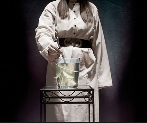 Renkler, sözler, objeler ve müzik el ele çalışarak anlattığımız hikâyeyi güçlendiriyordu. Daha sonra çılgın bir insiyatif ile Sofia, her bölümün temsilci objesini sahnede duran büyük bir kaseye sırayla koyup eser sonunda kaseyi ateşe vermeyi öne sürdü ve sorumluluğunu aldı. Aylarca farklı kaseler ve yanıcı maddelerle deney yapan Sofia konserin şüphesiz en tehlikeli ama en ilgi çekici ve merkezi elementlerinden birini başarmış oldu. Bu da görev dağılımımıza güzel bir örnek aslında, hepimiz yapabildiğimiz şeylere odaklandık. Kasenin yanında Sofia, bir kabile ritüeli temasına uygun kıyafetlerimizi ayarlamakla da meşguldü. Dome akustik olmayan sesler ve ses efektlerinin tümünden sorumluydu, aynı zamanda hoparlörlerin ve bilgisayarların kurulumunu da üstlenmişti. Bu şiirleri sesini beğendiğim bir arkadaşıma okutup kaydetmiştim, her kaseye yaklaştığımızda şiirin o kısmı hoparlörlerden seslendiriliyordu. Olabildiğince uzak bir gelecekten bugüne seslenen bir kabile ritüeli havasına gelmiştik anlayacağınız.