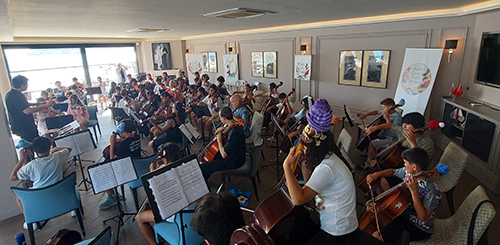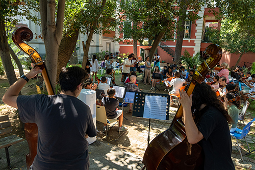 Ayrıca orkestra, yakın üyelerinin ötesinde bir topluluktur: Aileleri, destekçileri ve işletmeleri bir araya getirerek Adalar’ın kültürel yaşamına katkıda bulunur. Birbirlerini asla tanımayacak insanlar, sosyal uyum ve iş birliği örneği olarak birlikte çalışırlar. Temmuz ayındaki kursumuzda Hatay’dan müzisyenleri ağırladık, gruba hemen entegre oldular ve müziğin yabancıları nasıl arkadaşa dönüştürebileceğini gösterdiler.