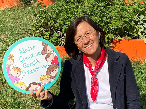 Pınar Satıoğlu: Adalar Çocuk ve Gençlik Orkestrası 2016’da kuruldu. Bu orkestranın tabiri caizse fikir annesiyim. Yaklaşık 10 yıllık süreç boyunca Barış İçin Müzik Vakfı’nın destekçisiydim. Süreç sonuna doğru neden Adalar’da benzer bir oluşum denemeyelim fikri oluştu bende. 2016’da bu fikri Adalar Kent Konseyi yönetim kurulu üyesi iken yönetim kuruluna açtım. Kabul gören projeye başladık. Konseydeyken bunu Adalar Kent Konseyi Eğitim Grubu olarak projelendirdik. Adalar Kaymakamlığı, Adalar İlçe Eğitim Müdürlüğü ve Adalar İlçe Halk Eğitim Müdürlüğü’nün de destekleri oldu. Çocuklar ilçe Millî Eğitim’e bağlı okullarda yaptılar çalışmalarını. Eğitim veren hocalar ve repertuvar ise tümüyle Barış İçin Müzik Vakfı’nın hocaları ve bizim tarafımızdan oluşturuldu.
