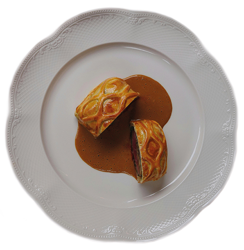 Dana filetolar oda sıcaklığına getirilir, tuz ve karabiberle hafifçe tatlandırılır. Yüksek ateşte ısıtılan tavaya az miktarda zeytinyağı eklenir ve etin her yüzeyi mühürlenerek iki dakika kadar kızartılır. Ateşten aldıktan sonra etin üzerine hardal sürülür ve dinlenmeye bırakılır. Mantarlar ve soğan/sarımsak ince ince doğranır. Tavaya tereyağı ve zeytinyağı eklenir, ardından mantarlar ilave edilerek suyunu çekene kadar kavrulur. Tuz, karabiber ve isteğe bağlı kekik eklenerek soğumaya bırakılır. Tezgâha serilen streç film üzerine pastırmalar hafifçe üst üste gelecek şekilde dizilir, ardından mantar harcı ince bir tabaka hâlinde yayılır ve hardallı fileto tam ortaya yerleştirilir. Streç film yardımıyla pastırma etin etrafına sıkıca sarılır, rulo hâline getirilir ve buzdolabında 15-20 dakika dinlendirilir. Milföy hamuru açılarak üzerine hafifçe un serpilirve et milföy hamuruna sarılır. Kenarları kapatılarak ve yine streç filme sarılarak 10-15 dakika daha buzdolabında dinlendirilir. Fırın 200°C’de (alt-üst fanlı) ısıtılır. Milföyün üzerine yumurta sarısı sürülür ve bıçakla hafif çizikler atarak desen verilir. Önceden ısıtılmış fırında milföy altın rengi olana kadar 25-30 dakika pişirilir. Dilimlemeden önce 10 dakika dinlendirilir.