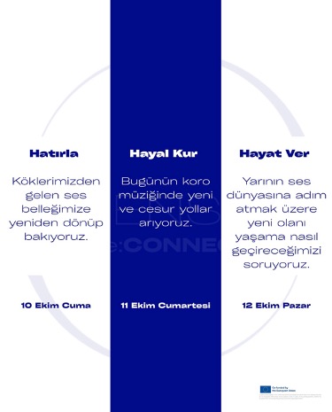 Kültürler arası diyaloğu ve geleceğe dönük umutları besleyen bu kapsamlı etkinlik, Avrupa koro dünyasının nabzını Ankara’da tutacak. Konferans ve konser programına ilişkin ayrıntılı bilgiler için: https://reconnect-tenso.com