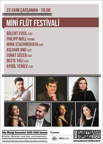 22 Ekim 2025 tarihinde Kadıköy Belediyesi Süreyya Operası’nda gerçekleşecek olan Mini Flüt Festivali, klasik müzikseverlere unutulmaz bir gece yaşatmaya hazırlanıyor. Uluslararası flüt dünyasının önde gelen isimlerinden Bülent Evcil, dünyaca ünlü piyanist Phillip Moll eşliğinde, genç ve yetenekli flütçülerle aynı sahnede buluşuyor.