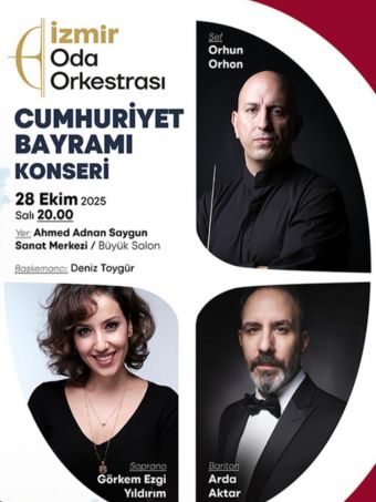 28 Ekim 2025 tarihinde Cumhuriyet Bayramı kapsamında yapılan konserde, şef Orhun Orhon yönetimindeki İzmir Oda Orkestrası, Ahmed Adnan Saygun Sanat Merkezi’nde sahne aldı. Konser öncesi, şef Orhun Orhon seyircileri selamladı ve bir konuşma yaptı. Yaptığı konuşmada; öncelikle seyircilerin Cumhuriyet Bayramı’nı kutladı ve çalacakları eserler hakkında bilgiler verdi. Tam olarak bir saat süren konserde seyircilerin yaş ortalaması 45-50 civarındaydı. Konsere ilk olarak Ferit Tüzün’ün Çayda Çıra Süiti’nin Giriş bölümü ile başlandı. Bu eser bölümleri, Giriş bölümü, Zeybek Havası ve Çayda Çıra Oyunu bölümlerinden oluşmaktadır. Bu eserler icra edildikten sonra, konserin diğer bölümünde bariton Arda Aktar’ın solo performansı ile devam etti. Bu bölümde Arda Aktar, Türk Beşleri’nin ilk sırasında yer alan Ahmed Adnan Saygun’un Bozlak ve Köroğlu adlı eserlerini seslendirdikten sonra Kaptanzade Ali Rıza Bey’in Efem adlı türküsünü orkestra düzenlemesi ile birlikte eşlik etti. Hemen ardından Jean Sibelius’un Valse Triste adlı eseri orkestra tarafından seslendirildi. Sonrasında soprano Görkem Ezgi Yıldırım George Bizet’nin Carmen operasından Toreador aryasını orkestra eşliğinde seslendirdi. Konser Arda Aktar ve Görkem Ezgi Yıldırım’ın düeti ile devam etti. Bu bölümde Ernesto De Curtis’in Non Ti Scordar Di Me adlı eserini ve Franz Lehár’ın Das Land des Lächelns (Gülümseyen Ülke) operetinden aynı adlı eseri ile The Merry Widow” (Şen Dul) operetinden Lippen Schweigen adlı eserleri seslendirdiler. Konserin son bölümünde ise 10. Yıl Marşı ve İzmir Marşı’na seyirciler tarafından eşlik edildikten sonra konser noktalandı.