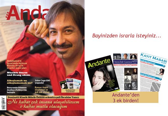 Aydın Büke'nin Müzikte 'Sturm und Drang' akımını inceleyen yazısını; Feyzi Erçin'in Hollanda'da yaşayan soprano Aylin Sezer ile yaptığı söyleşiyi; Ersin Antep'in İstiklal Marşı'nın telif sorunlarını büyüteç altına aldığı makalesini; Halil Tekiner'in büyük besteci Mozart'ın ölümünün ardındaki gerçekleri dile getirdiği sayfaları; Sami Kısaoğlu'nun ilgi çekici John Cage sözlüğünü; Tonguç Çağın'ın geçtiğimiz yüzyılın ünlü şefi Georg Solti'yi tanıttığı yazısının birinci bölümünü; yine yeni yazarlarımızdan Simge Burhanoğlu'nun Süreyya Operası'nda sahnelenen Hurrem Sultan balesine dair değerlendirmesini ve daha nice ilginç konuların yanı sıra, sizler için hazırladığımız üç ayrı ek çalışmamızı da ilgiyle okuyacağınızı umuyoruz. Fazıl Say'ın sanat yönetmeniliğinde gerçekleşecek olan 13. Uluslararası Antalya Piyano Festivali eki, Opera Bale Gazetesi ve rakipsiz eleştirmen kadromuzun değerlendirmelerinin yer aldığı Kayıt Masası eki ile yine karşınızdayız… Hepinize müzik dolu günler, iyi okumalar diliyorum…