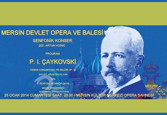 Mersin Devlet Opera ve Balesi (MDOB), şef Artun Hoinic yönetiminde Çaykovski'nin Keman Konçertosu, Re major op. 35 ve 5. Senfoni, Mi minör op. 64 eserlerini Mersinli sanatseverler ile buluşturacak. İki bölümden oluşan konserin ilk bölümünde; bestecinin Keman Konçertosu'nu ünlü keman sanatçısı Aram Badalyan seslendirecek. Mersin Devlet Opera ve Balesi Orkestrası'nın deneyimli sanatçılarının görev aldığı konser; 25 Ocak 2014 Cumartesi günü saat: 20.00'de Kültür Merkezi Opera Sahnesi'nde. Konserin konzertmeisteri Marina Kvlıvidze. Mersin Devlet Opera ve Balesi Müdür ve Sanat Yönetmeni Erdoğan Şanal yaptığı açıklamada 'Her ay seslendirilmesine ayrıca önem verdiğimiz senfonik konserler ile Mersin'de önemli bir boşluğu dolduran MDOB, yine klasik müzik edebiyatının önemli bir eserini dünyaca ünlü keman sanatçısı Aram Badalyan ile seslendiriyor. Çaykovski'nin Keman Konçertosu ve 5. Senfoni eserlerini seslendireceğimiz Senfonik Konser'i sanatseverlerin kaçırmamasını tavsiye ediyoruz' dedi.