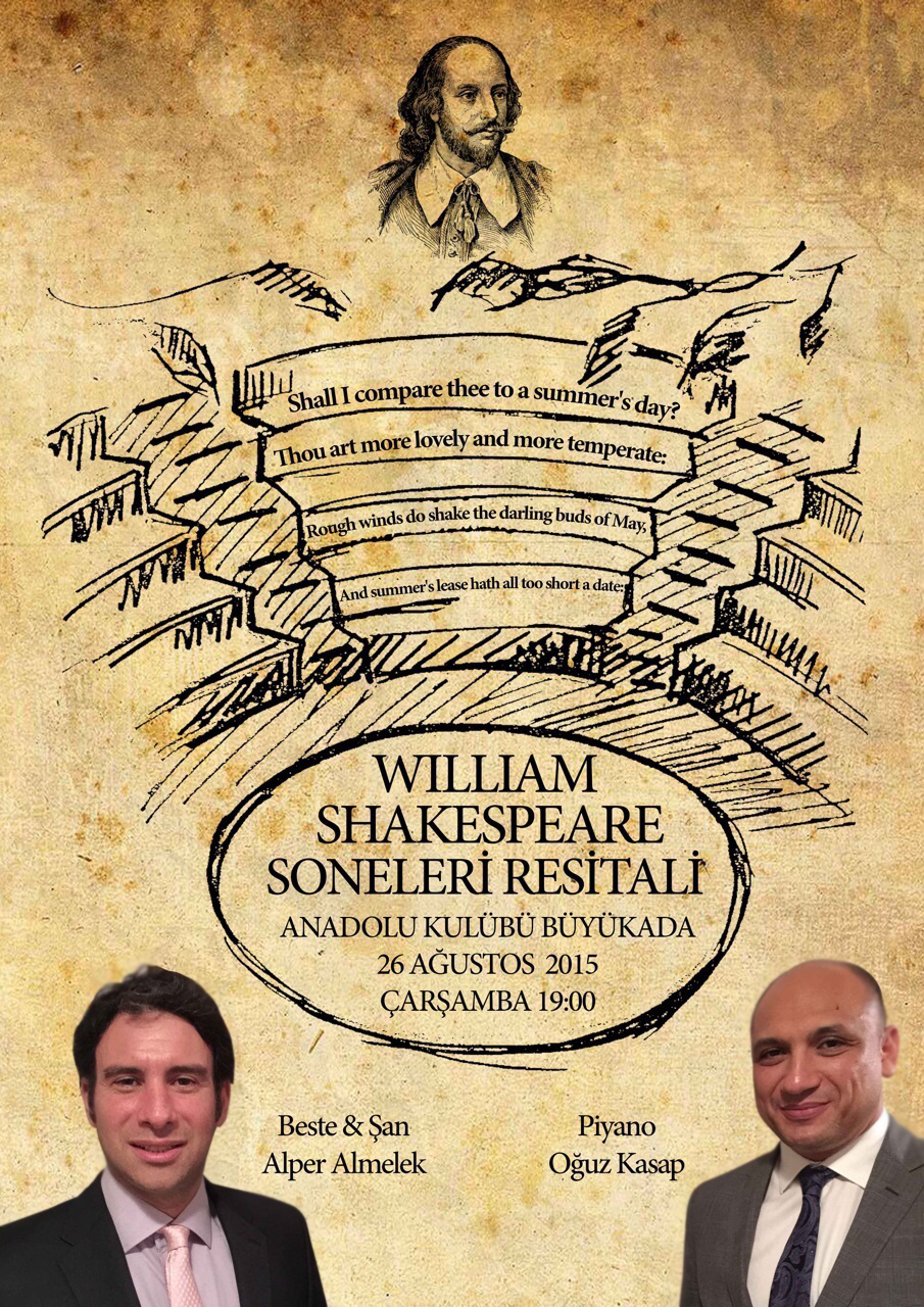 İngiliz oyun yazarı William Shakespeare’in soneleri, Türkiye’de gerçekleşecek olan bir projeyle , “piyano ve şan” formatında sanatseverlerle buluşacak, resital 26 Ağustos'da Büyükada'da verilecek