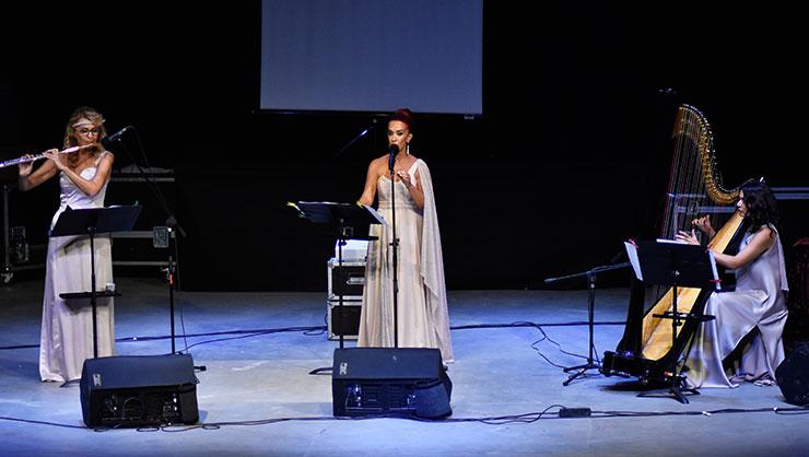 Flütte Antalya Devlet Senfoni Orkestrası üyesi Lelya Bayramoğulları, arpta gene aynı kurumun sanatçısı Aslıhan Güngör ve Antalya Devlet Operası solisti soprano Nurdan Küçükekmekçi’yi alkışlıyoruz. Uzun yılların okul ve meslek birlikteliği müzikte uyuma, aynı mantık ve görüşe, birbirlerini iyi dinlemeye ve kolay yol almaya sebep oluyor. Mitolojinin bu tınısı derin iki kardeş sazına Nurdan Küçükekmekçi’nin de ipek-kadife sesi eklenince  kendimizi antik çağlarda Musa’ların arasında bulduk.