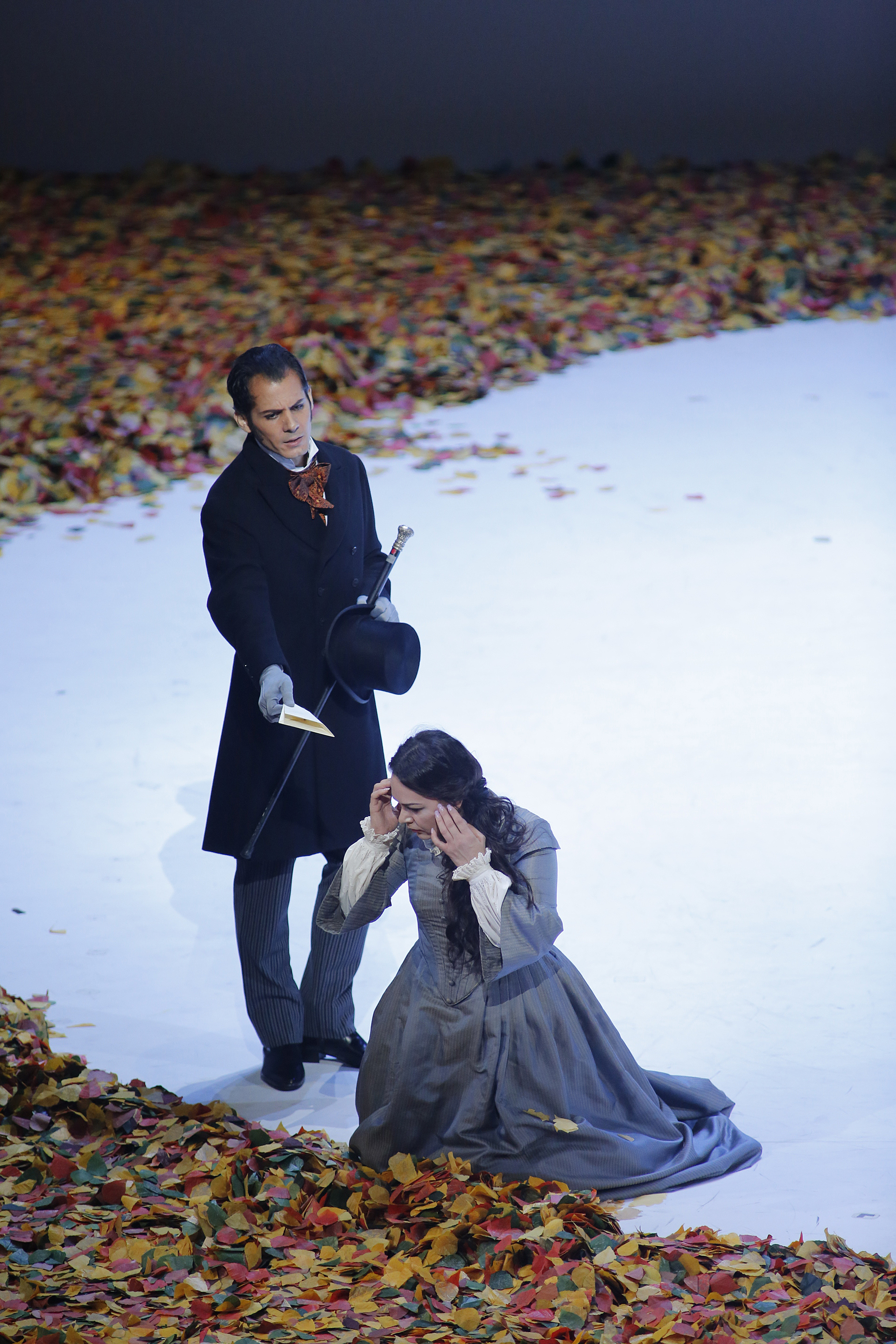 Onegin rolünü bugüne kadar dört değişik yapımda söylemiştim ama bu yapımın benim için ayrı bir yeri var. 24 Şubat 2007 tarihinde Metropolitan’da eserin DVD kaydı yapılırken canlı izlediğim, Robert Carsen’in çok sevdiğim rejisinde o gün Onegin rolünü söyleyen Dmitri Hvorostovsky’nin kostümleriyle aynı yapımda sahneye çıkmak benim için çok anlamlı oldu.